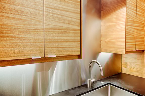 Our design team is familiar with thousands of standard and specialized products and will present options for just about everything. And if you want something extra-special – like the grain-matched cabinet doors above – they can find that for you, too.