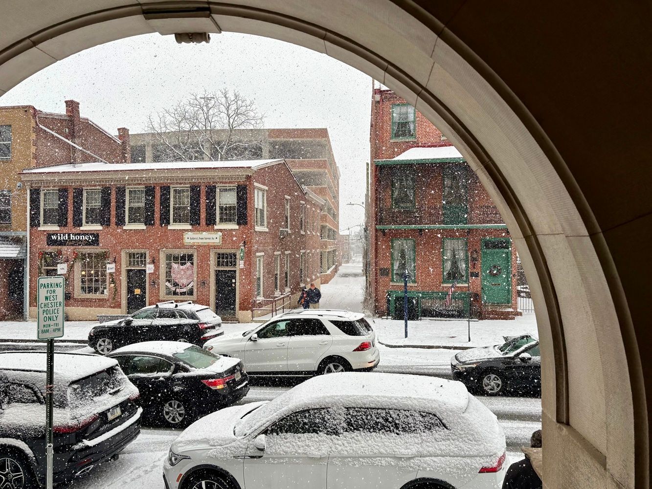 âThereâs a guy stuck in Pear Alley right now trying to get onto W. Washington St. He tried to drive over a mountain of snow that a plow put there thatâs higher than the hood of his car. I thought he saw the mountain and was going to attempt to reverse out but he didnât. He just gunned it right into the wall of snow for some reason. Thereâs no way heâs getting out of there without a tow truck,â resident Melissa Johnston via the West Chester Borough Police Department Facebook page.